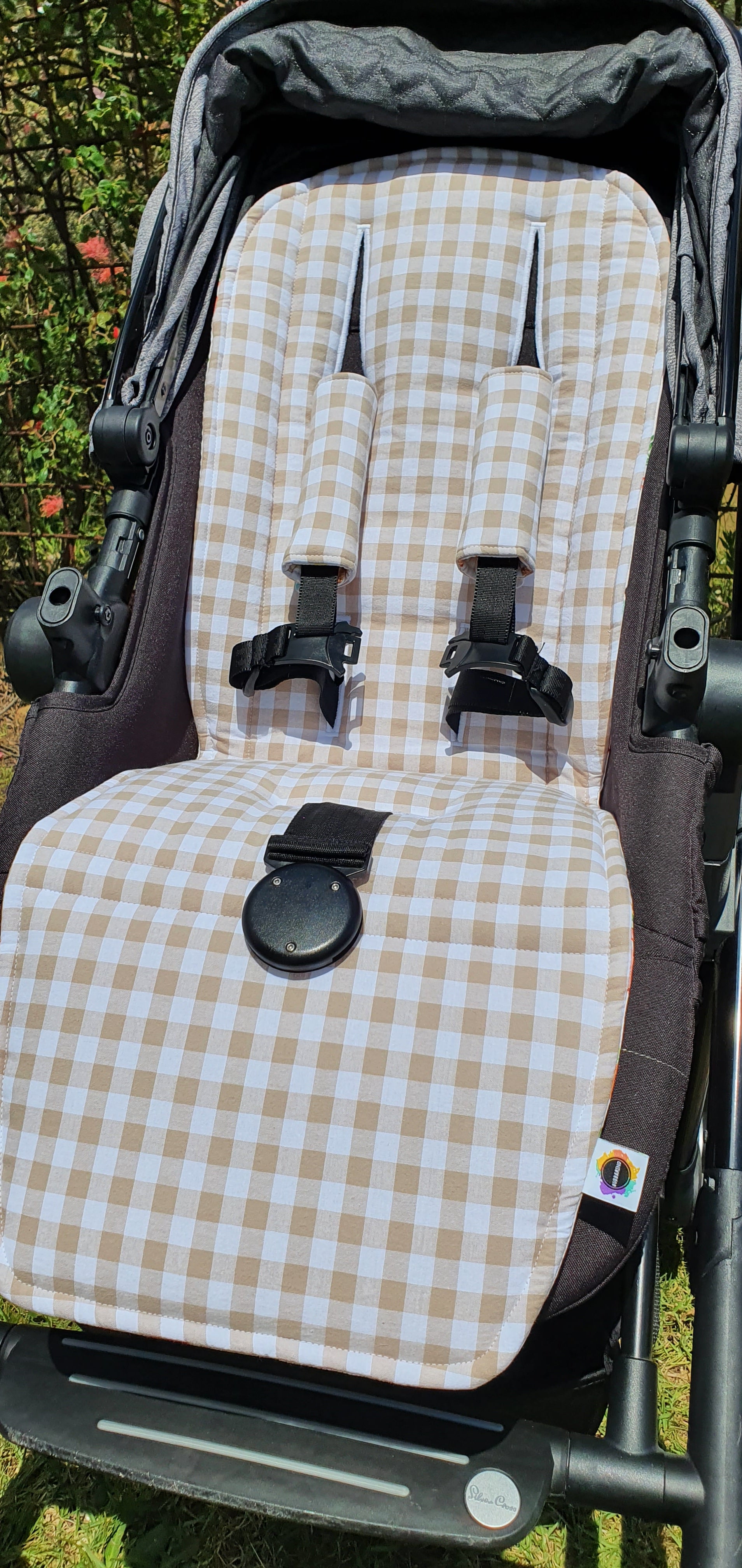 Our universal pram liner is fully reversible, giving you two stylish looks in one. Flip between the gorgeous beige gingham front and the adorable farmhouse scene reverse to suit your mood or match your pram. Each liner also comes with a matching set of shoulder-harness covers for the perfect finishing touch.